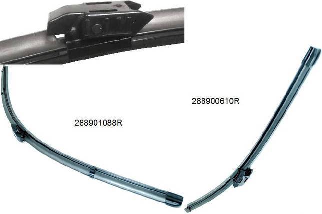 В 2017 г. компания Renault модернизировала поводки дворников, которые получили оригинальное крепление. Длина деталей составляет 650 и 400 мм, с завода устанавливаются щетки с номерами 288901088R и 288900610R (детали поставляются как запчасти).