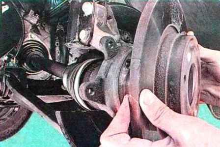 - Далее снимаем тормозной диск. Перед тем как его откручивать, желательно залить в отверстие вдш-ку и обстучать его.