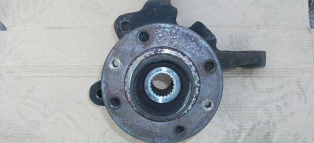 - Теперь собственно мы с вами снимаем и сам кулак. Следует отметить, что привод очень часто прикипает к ступице, но в нашем случае кулак снялся очень легко.
