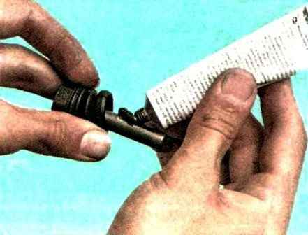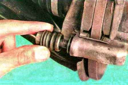 Смазываем консистентной смазкой направляющие пальцы суппорта, для этого