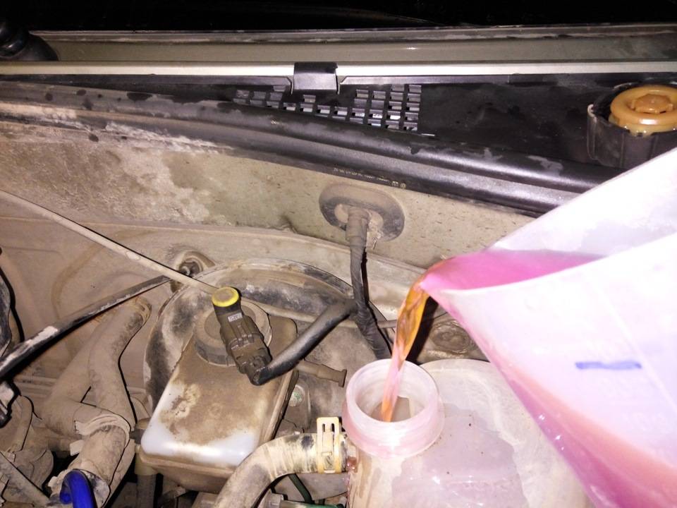 Основная операция по заливу закончена, осталось выгнать воздух из системы. Для этого нужно завести машину и периодически увеличивая обороты прогреть в течении 5-10 минут. Далее откручиваем пробку расширителя, нормализуем давление.