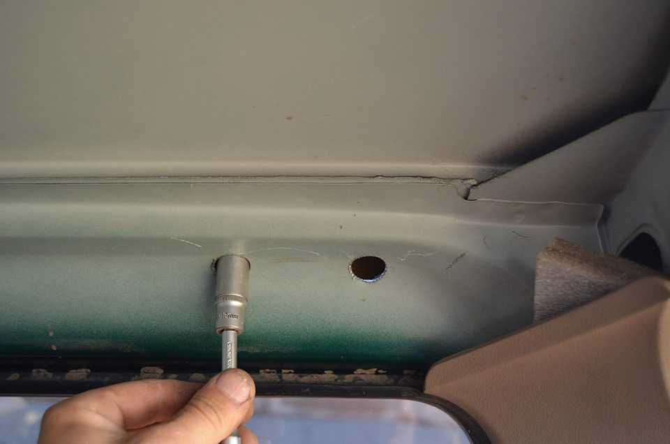 Для сверления нужно выбирать ту часть крыши, где есть усиление (ближе к краю). Изнутри (во внутренней раме) отверстия высверливаются шарошкой. Это необходимо для фиксации багажника гайками.