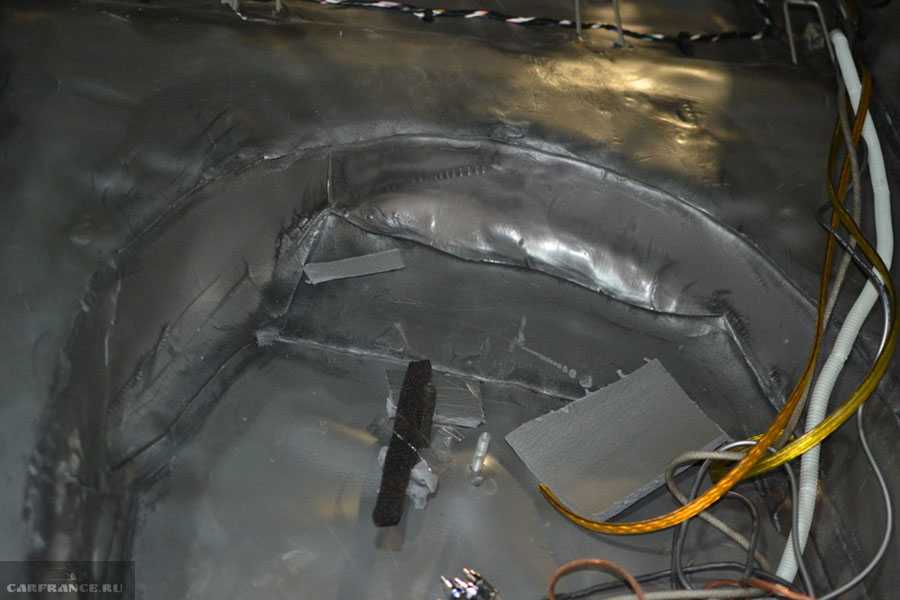 Проклеивать лонжероны нет никакого смысла, а про телевизор вообще не может быть и речи. С выбором материала нужно быть особенно осторожным. Ни в коем случае не покупайте огнеопасные демпферы. Дело в том, что температура моторного отсека в летний период эксплуатации может достигать таких отметок, что воспламенение просто неизбежно.