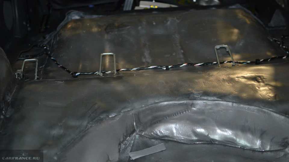 - Сначала на металл идет вибрационно-поглощающий материал;