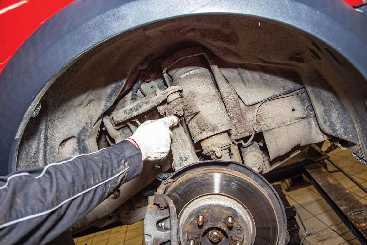 Что касается ошибок мастеров при замене стойки, то их допускается немало. Самая банальная — отсутствие прокачки амортизаторов перед установкой. Скопившийся в корпусе воздух при езде приводит к серьезным проблемам. Неаккуратная установка может также привести и к потекам масла. А использование ударного гайковерта для закручивания центральной гайки — к обрыву резьбовой части штока стойки. Распространенная ошибка — затягивание креплений амортизатора на висящей на подъемнике машине, что приводит к проблемам при ее опускании, например выворачиванию сайлент-блока или отслоению его резины от металла.