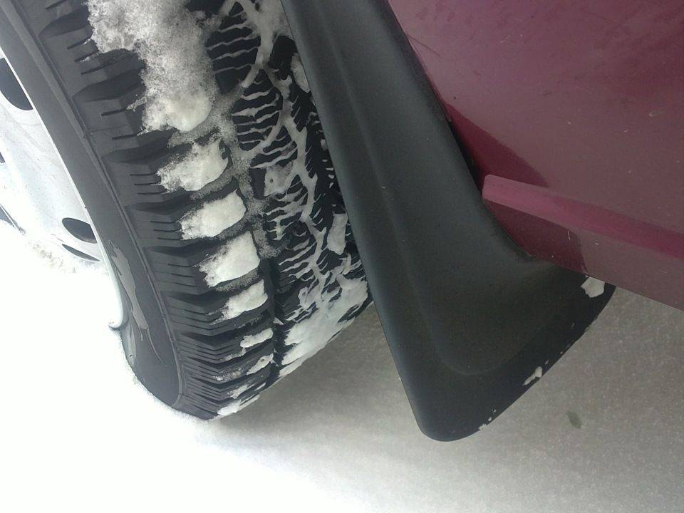 Ставят их чаще всего просто поверх родных. Так же сделаем и мы на своем подопытном Рено Дастер. Делает это с той целью, чтобы придать дополнительной жесткости конструкции. Однако, случается такое, как у нас, что он становится неплотно или же не может стать вообще. Нам же пришлось подрезать угол родного брызговика, чтобы новый мог стать нормально. После этого все вышло хорошо, и новый брызговик был прикручен саморезами к арке. Прикручивать желательно сразу, не нужно пытаться приклеить. Чаще всего такие попытки заканчиваются тем, что брызговик отваливается и теряется. У нас же шел толстый слой пластиковой подкрылки, так что можно было не бояться прикручивать, чего желаем и вам.