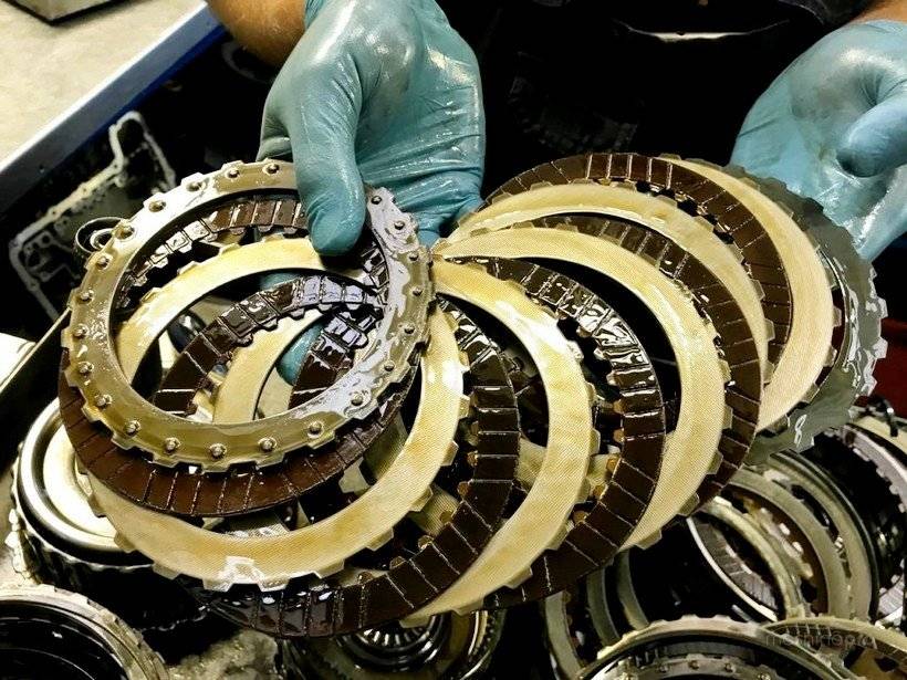 Фрикционы иногда подгорают. Особенно в условиях недостатка жидкости ATF. При снижении давления диски начинают «пробуксовывать». Это вызывает неприятные рывки в момент переключения передач. В норме фрикционы сжимаются и разжимаются, чтобы зацепить нужную шестерню. Низкий уровень масла приводит к проскальзыванию. Типичный симптом — появляется запах гари, жидкость становится черной. Изношенные диски придется заменить.