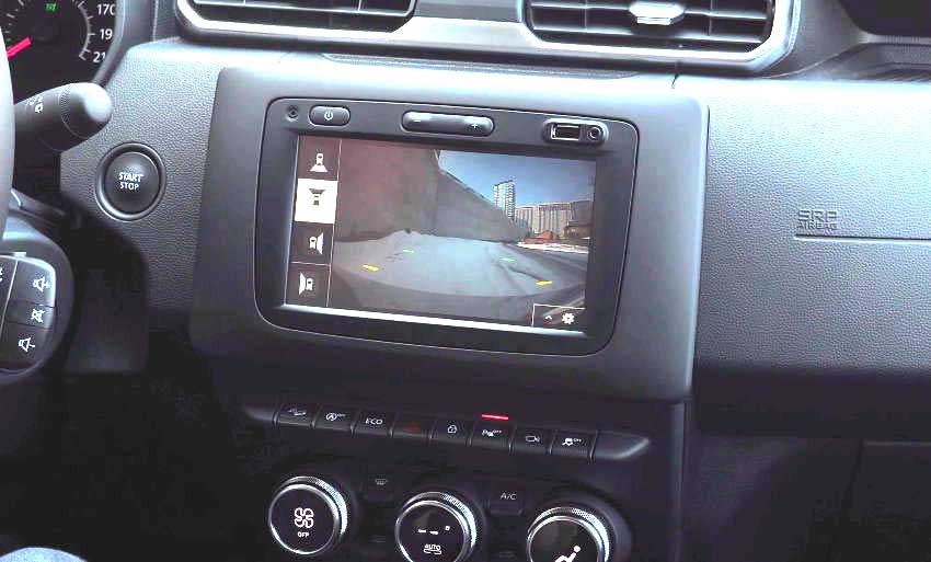 Экран мультимедиа подняли на нормальную высоту. 3 из 5-ти воздуховодов надежно защищают его от солнечных бликов. Кнопками включения различных функций удобно пользоваться не снимая руки с рычага КПП. Ручки климатической установки снабжены дисплеями, отображающими установленные параметры. Рулевая колонка обрела возможность регулирования по двум направлениям. Специально для Рено Дастер 2018 разработаны новые сиденья. Возможна установка полного комплекта камер кругового обзора. Доступна система мониторинга «мертвых» зон. Дальний свет может переключаться на ближний в автоматическом режиме. Предусмотрены доступ в автомобиль без ключа и кнопка запуска двигателя.