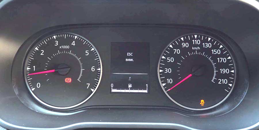 Приборный щиток оснащен круглыми циферблатами спидометра и тахометра, посередине находится монохромный бортовой компьютер.