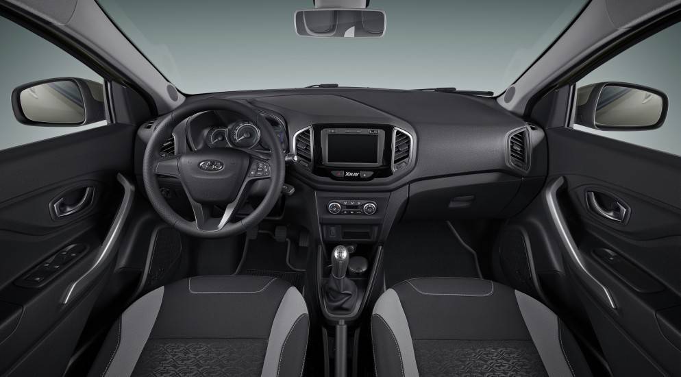 Лада Икс-рей удивила не только внешне, в продолжение дизайну экстерьера реализован и интерьер, вполне соответствующий стилю авто. Внутреннее убранство ничем не напоминает присущий прошлым моделям АвтоВАЗа стиль, и оформлено по всем европейским канонам. Отделка салона выполнена из качественных материалов, в обновлённой версии улучшена звукоизоляция, приборная панель в виде трёх колодцев достаточно информативна, но что действительно впечатляет, так это мультифункциональный руль с кнопками управления аудиосистемой и Bluetooth. Атмосферу дополняет светодиодная подсветка интерьера, создающая комфортное мягкое свечение.