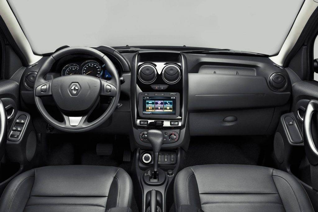 В салоне Рено Дастер сохранена панель спереди, в середине ее располагается семи дюйм. экран мультимедиа системы, поддерживающая блютус и USB. Также усовершенствовали навигацию. Материалы отделки внутреннего убранства имеют высокое качество. Салон премиальной вариации будет отделан кожей.