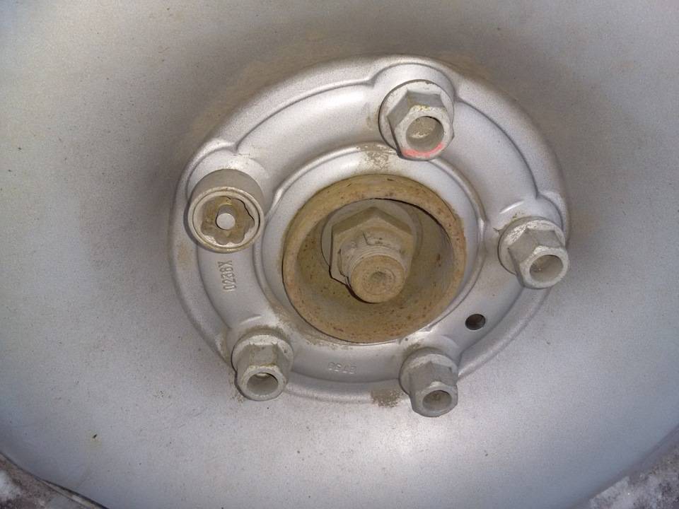 Всем привет!Проблема ржавой гайки у меня обозначилась еще год назад, я упомянул о ней в ЭТОЙ записи.. При переобувке машины в зимние колеса на штампованных дисках не прикрытой остается гайка ступицы колеса.