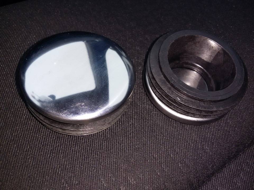 Конечно, это каких-либо серьезных последствий не имеет, подшипник закрыт и ему ничего не грозит, но внешний вид ржавой гайки, просто выбешивает! Давно хотел подобрать подходящую заглушку. Замерил штангенциркулем посадочное место, получилось 57 мм по внутреннему диаметру. Но все мои попытки найти подходящую заглушку в магазинах, на авторынке и даже у косоглазых друзей на АЛИ не увенчались успехом. Вот такой у нас дефицитный размерчик!
