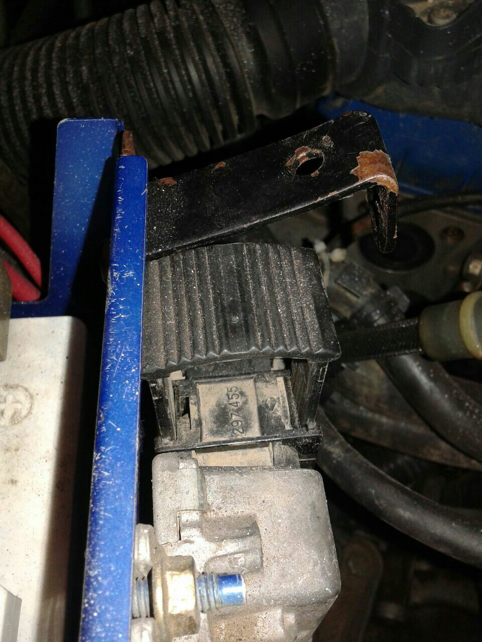 Идем дальше. На схеме указано, что разделение идет в соединительном разъеме. Лезем туда.Находится он в блоке реле и предохранителей, под капотом.Чтобы было проще его достать стоит снять это реле: