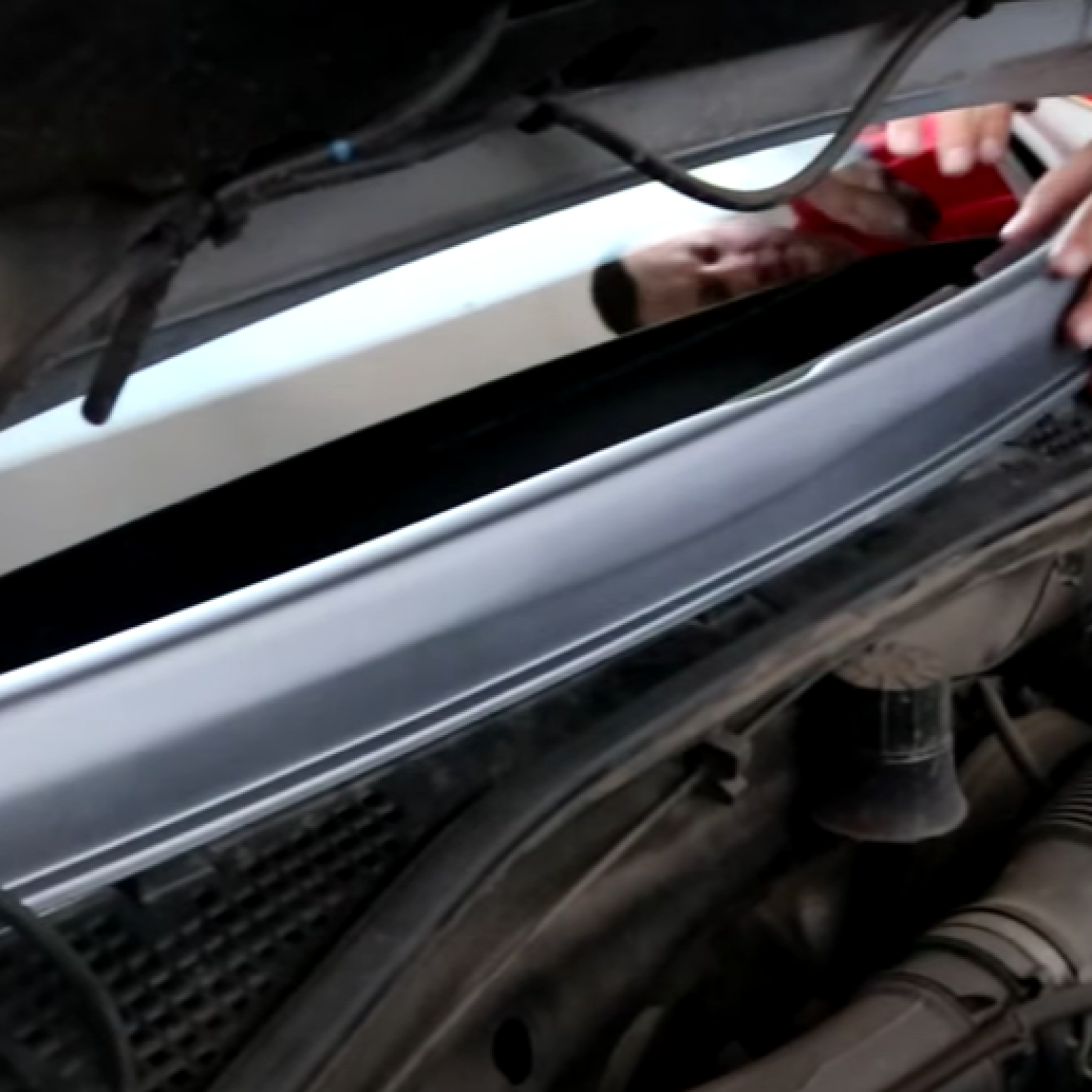 - Предварительно очистите подкапотное пространство, если на нем успела скопиться грязь, пыль. Место, куда будет установлена резинка, рекомендуется сначала обработать мовилем, приобретенным в специализированном магазине для автомобилистов. Подойдут варианты в форме аэрозоля, жидкости или пасты.