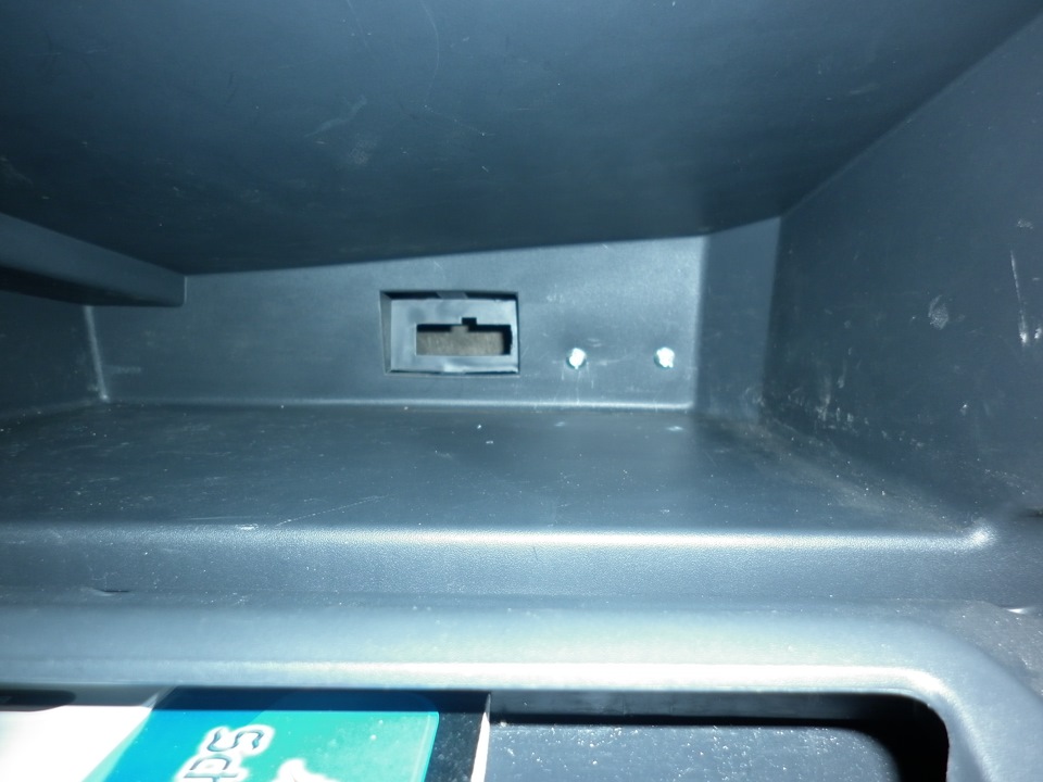 Для доступа необходимо открыть бардачок, освободить его от вещей. Разъём будет посередине бардачка на задней стенке. Он закрыт декоративной заглушкой. Необходимо её отщелкнуть.