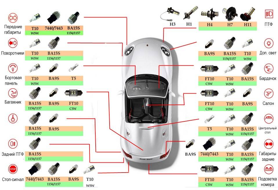 Маркировка фар ближнего и дальнего света имеет свои условные обозначения и зависит от типа ламп: