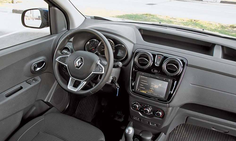 На переднем ряду машины находиться намного приятней. Передняя панель, с дешевым пластиком, напоминает Logan, Duster и Sandero. Всё-таки, Renault Dokker 2018 бюджетный автомобиль.