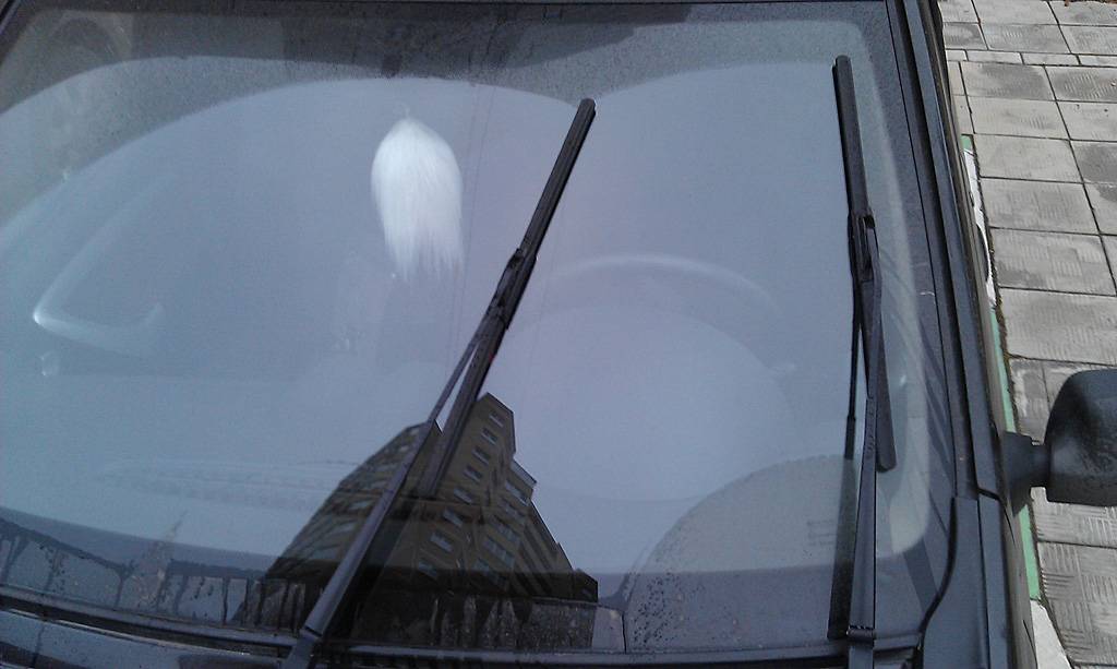 Правая щетка «родная», длиной 50 см. Чтобы счищаемая ею грязь попадала в сектор левой щетки и снималась ее обратным ходом, правая щетка при работе должна уходить чуть левее. Но если ее переставить на шлицах, внизу останется широкий неочищенный сектор. Поэтому наконечник поводка мы разогнули, и теперь замок щетки параллелен оси поводка. Последний пришлось снять с автомобиля (в этой операции полезен съемник, на худой конец Г-образные пассатижи) и разгибать в тисках. Процедура несложная. И пусть после такой доработки щетка в исходном положении лежит под небольшим углом к нижней кромке ветрового стекла, зато увеличивается сектор обзора и нет потеков (фото 1).
