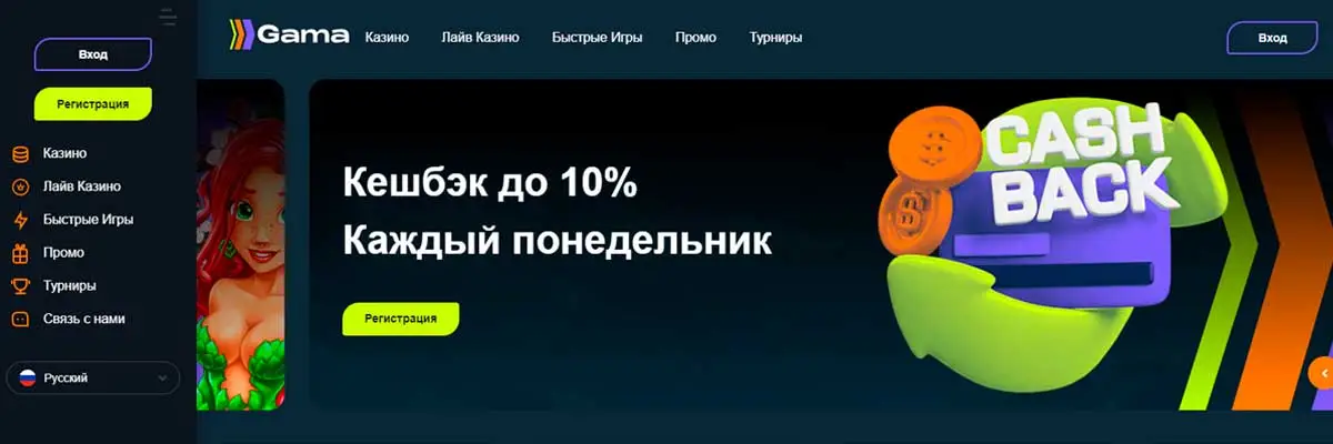 Так как заведение новое, о достоинствах еще рано судить, так как хорошую репутацию трудно заработать быстро. Однако Гама с момента открытия дарит множество бонусов новым игрокам и быстро выплачивает все выигрыши. Минимальный депозит составляет всего 200 рублей.