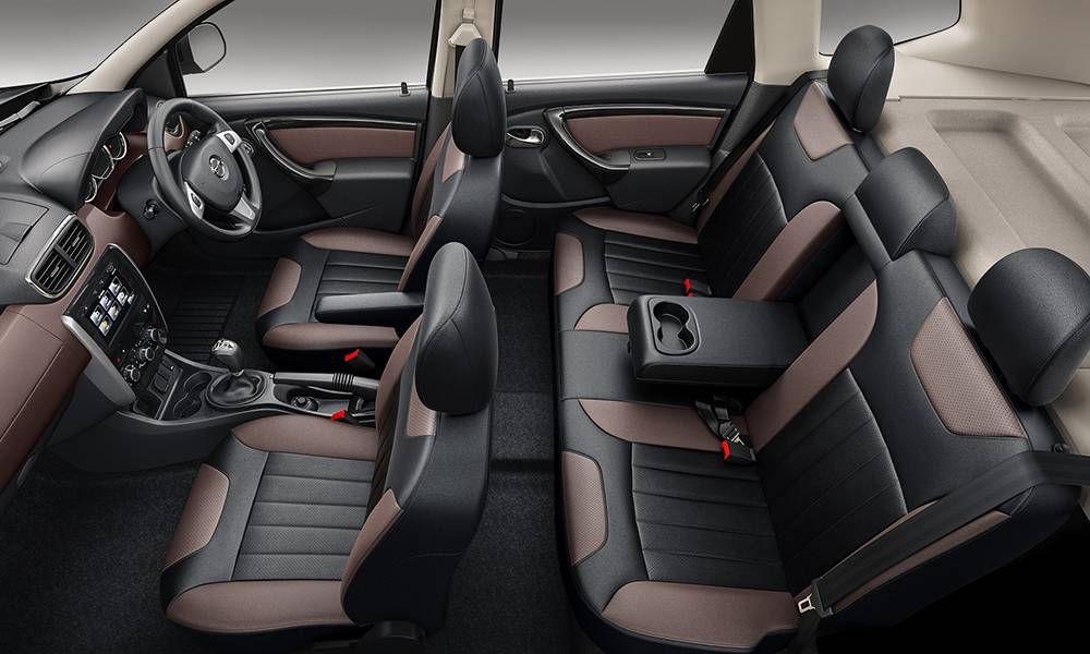 Салон Duster рассчитан на 5 посадочных мест, причём с комфортом могут уместиться даже 3 взрослых на заднем ряду. Только пассажиру в центре наверняка будет немного мешать высокий центральный тоннель. При этом диван умеренно жёсткий, удобный, предлагает запас пространства в ногах и над головой. Впереди и вовсе 2 комфортабельных кресла с возможностью индивидуальной настройки.