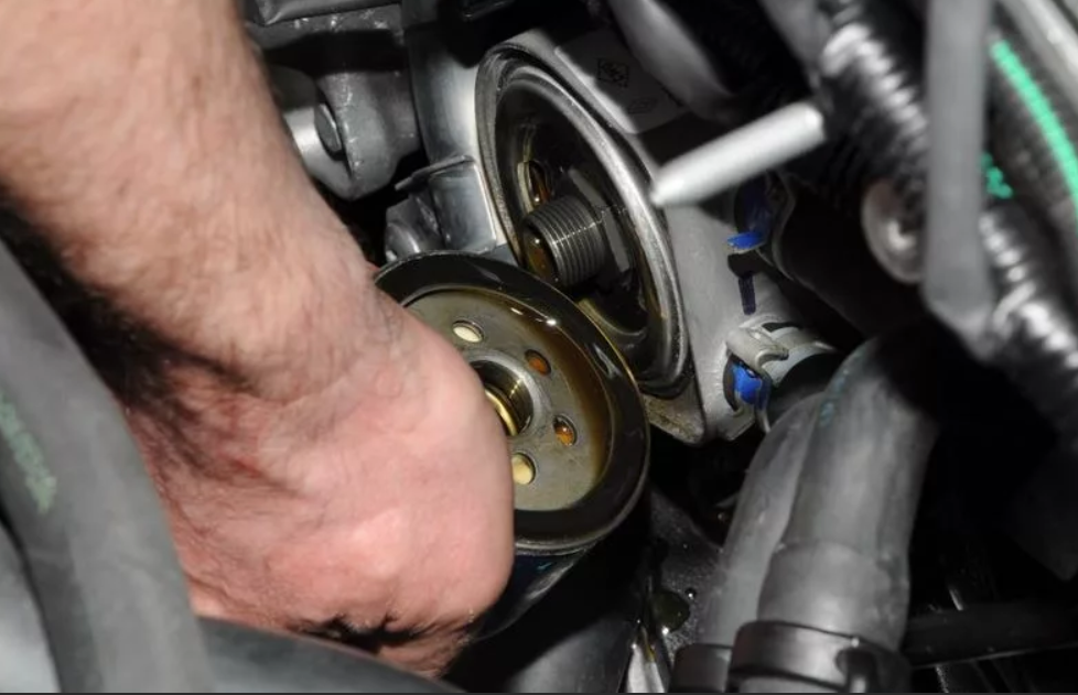 Ключ одевается на масляный фильтр и при помощи трещотки срывает деталь. Далее деталь откручивается и снимается с блока цилиндров. Стоит отметить, что с фильтра может вытекать какое-то количества масла, поэтому нужно заранее поставить тару для сбора отработанной жидкости.