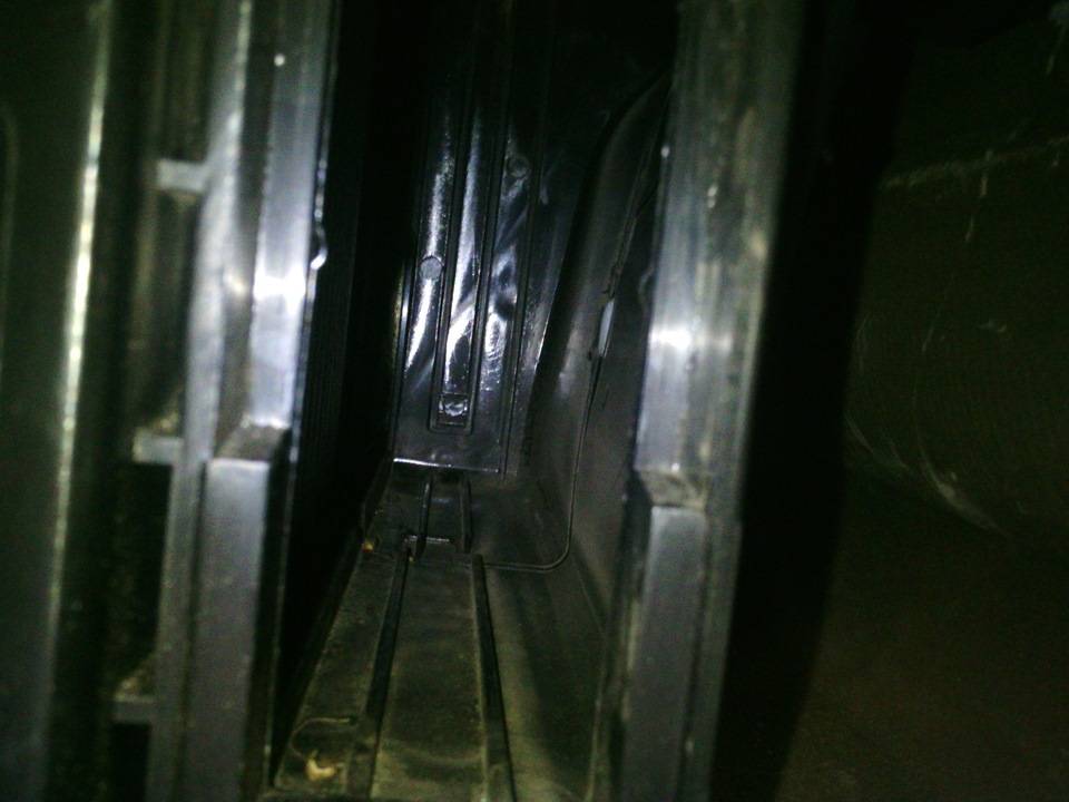 Для этого, нежно просовываем туда руку, бо не оторвать всякие проводочки, и просто сжимаем пластиковый «хобот» пальцами, толкая его наружу: