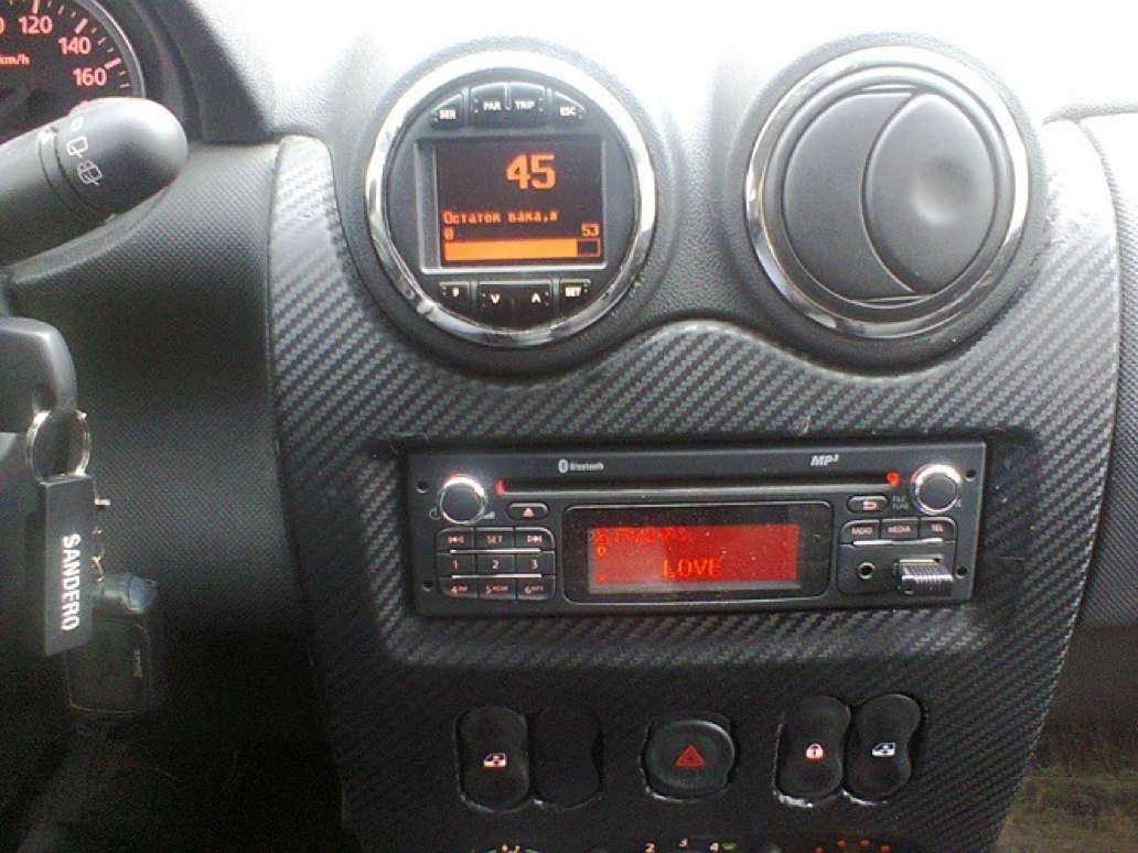 Устанавливается БК на Сандеро 2015 года в воздуховод. Первоначально демонтируется кольцо с серебристым напылением с последующим снятием дефлектора. Проводка тянется к разъёмам, находящимся в бардачке. Выполнив подсоединение, затыкаем воздуховод губкой, во избежание негативного воздействия горячих и холодных воздушных потоков. Поместив бортовой компьютер в подготовленное гнездо, определяем протокол «Рено».