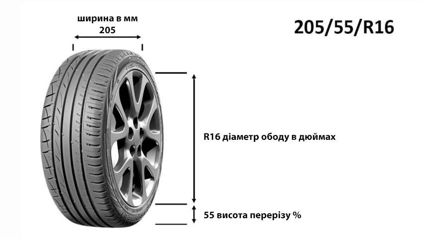На боковине каждой шины для легковых автомобилей и легких грузовиков имеется буквенно-цифровой код, описывающий размеры шины. Для большинства шин этот код начинается с буквы «P». Некоторые могут начинаться с буквы «LT», что означает легкий грузовик.