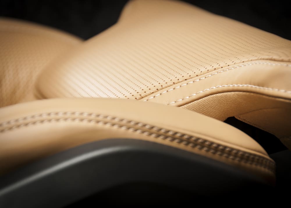 - Восстановление обивки. Большинство ДЦ восстанавливают кожаную обшивку внутри авто, зашивают дырки на обивочном материале. При большом износе клиентам предлагают перетяжку (полностью либо частично).
