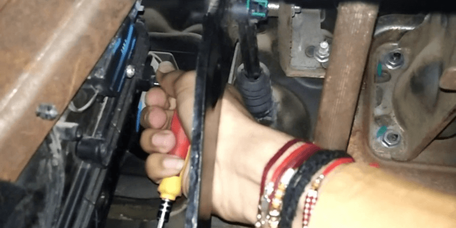 - Лежа на правом боку под бардачком, найти место расположения салонного фильтра.