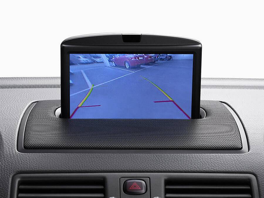Включение камеры заднего вида происходит в момент переключения коробки передач в положение заднего хода автоматически или вручную. При этом на мониторе возникает изображение пространства, расположенного позади автомобиля, а также парковочные линии, которые могут быть отключены. Таким образом, водитель, двигаясь задним ходом, видит происходящее за ней и оперативно реагирует на изменение обстановки.