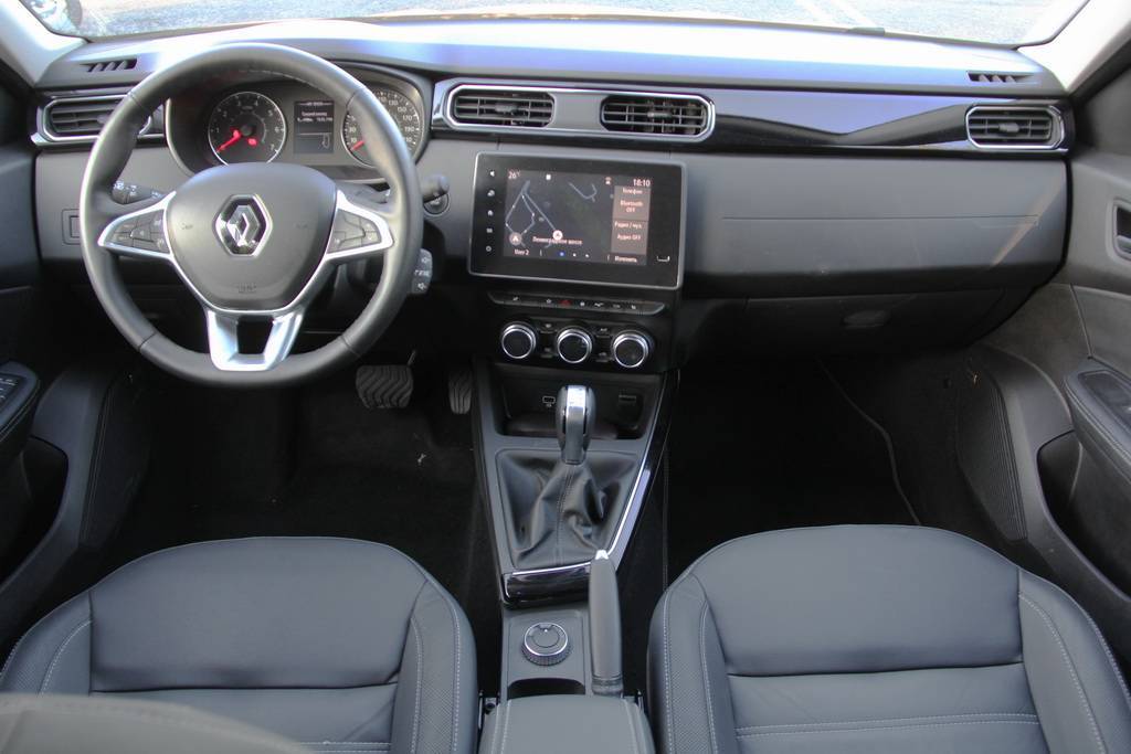 Дверной проем Арканы заставит чуть сложиться высоких водителей. Нам средним по росту водителям захотелось иметь больший диапазон регулировки руля по вылету. Диванная мягкость кресел покажется удивительным повтором образцов китайского автопрома. Вместе с этим, Аркана наворочена современными опциями. Светодиодные фары, амбиентная подсветка в салоне, бесключевой доступ, дистанционный запуск, четыре камеры внешнего обзора и сенсорный дисплей, обогрев руля. Правда и большинство кнопок сенсорные, а это уже спорное преимущество! Также не порадовал нас жесткий, гулкий пластик передней панели и однозонный климат.
