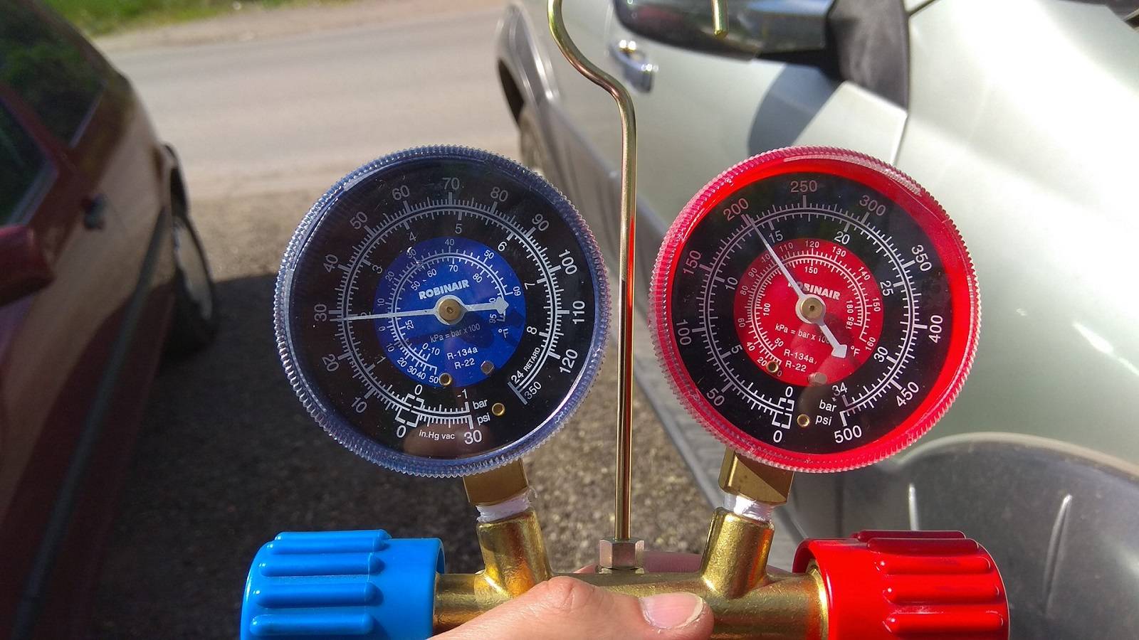 Измерение давления в трубках кондиционера автомобиля