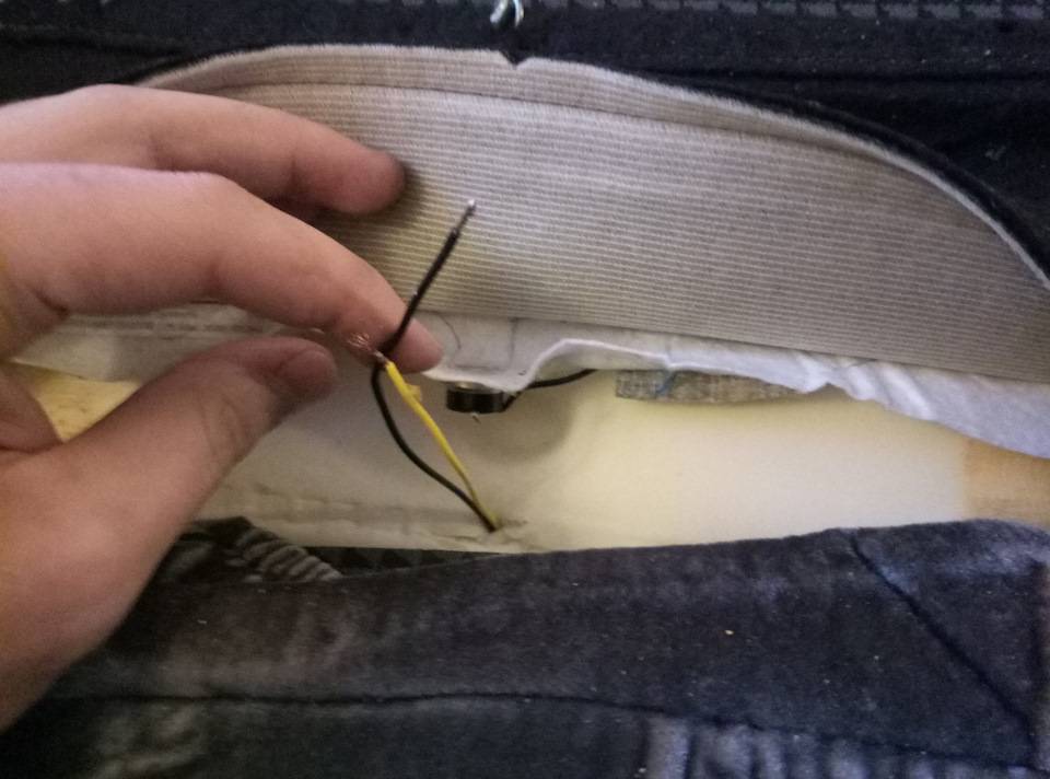 Как уже упоминалось, он расположен на сидении, ближе к спинке. Проблема распространённая — провода, подведённые к датчику, сильно натянуты. Из-за этого натяжения и отваливается провод.