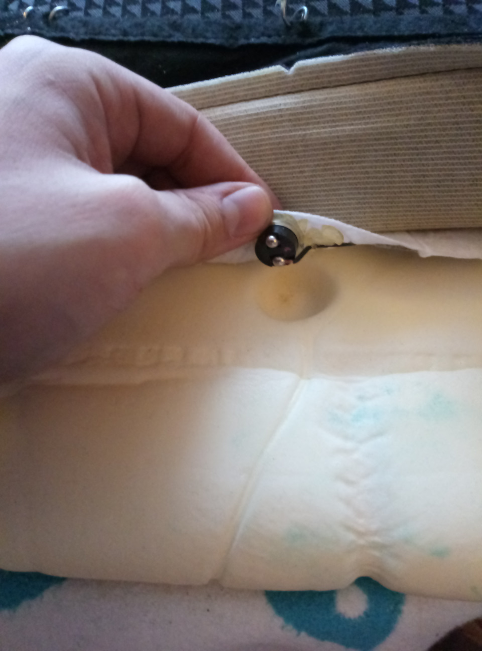 Снять обшивку и разжать кольца в глубине сидения, в месте соединения спинки и нижней части и по сторонам центрального квадрата. Обшивка спинки кольцами не крепится, поэтому её можно просто стянуть.