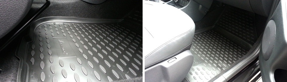 Защитные ковры размещают в салоне и багажнике автомобиля. Салонные изделия имеют специальные выемки и состоят из 4-5 частей, включая дополнительный центральный коврик. В 3D-моделях два задних элемента соединяются специальной перемычкой.