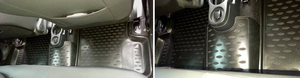 Важно было то, чтобы ковры максимально закрывали ковровое покрытие в салоне автомобиля: чтобы на водительском ковре была «лапка» под площадку отдыха ноги, чтобы между задними коврами была «перегородка» и чтобы коврики были «корытцами», т.е. с бортиком
