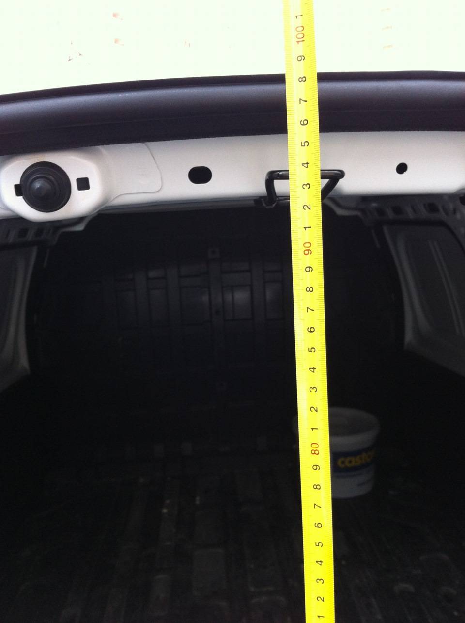 Размеры проёма дверей багажного отделения: высота 92 см., ширина 96 см. Диагональ от верхнего угла до колёсной арки: 128 см. Внутреннее расстояние между колёсными арками 96 см. Расстояние от кромки багажника до перегородки: 194 см.