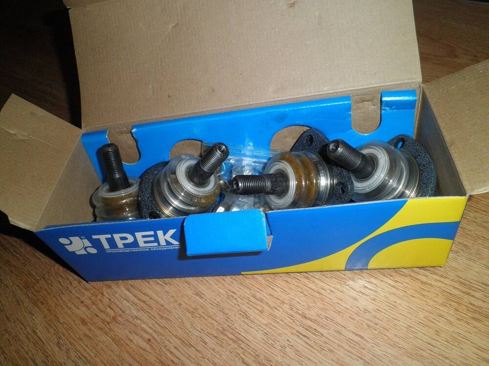 Производственное объединение «Трек» занимается изготовлением шаровых опор для условий бездорожья. Продукция бренда свободно выдерживает динамические нагрузки до 6 тонн и характеризуется ресурсом до 50 000 км пробега. Шаровые «Трек» отлично подходят для установки на универсалы или спортвагоны, а также широко применяют при корче строении.
