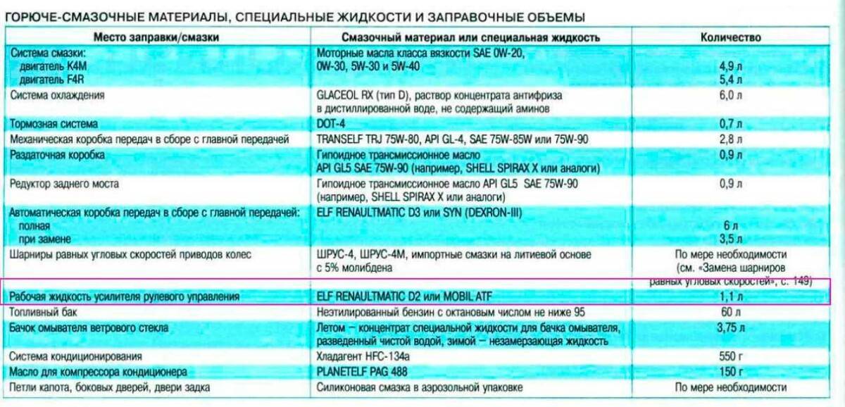 Производитель рекомендует заливать в ГУР масла RENAULTMATIC D2 и Mobil ATF.