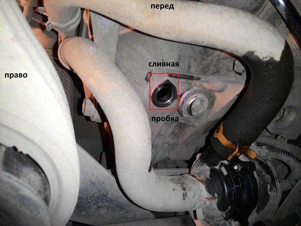 Учитывая расположение заливных отверстий, откручивать пробку нужно торцовой головкой с воротком, а не обычным ключом. В остальном набор требуемых инструментов и материалов тот же, что нужен для замены масла в раздатке: