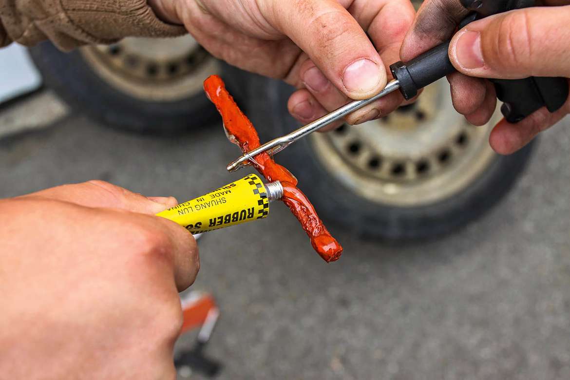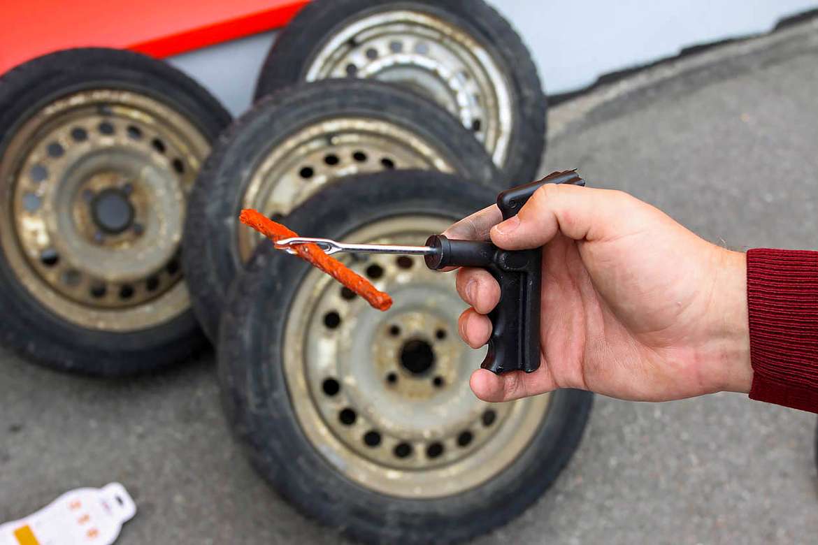 По инструкции перед установкой жгута место прокола необходимо зачистить специальным напильником, который входит во все комплекты. Беда в том, что его толщина — добрые полсантиметра, так что протиснуть его в стандартный прокол от гвоздя оказалось серьезной проблемой: пробить насквозь несколько слоев покрышки так, чтобы напильник более-менее свободно ходил в отверстии, очень непросто. В этом плане лучшим оказался инструмент из самого дешевого набора за 131 рубль, где напильник был винтовым и вкручивался в покрышку как саморез. А вот c напильниками-терками из наборов ATRK‑3 и ATRK‑4 мы намучились.