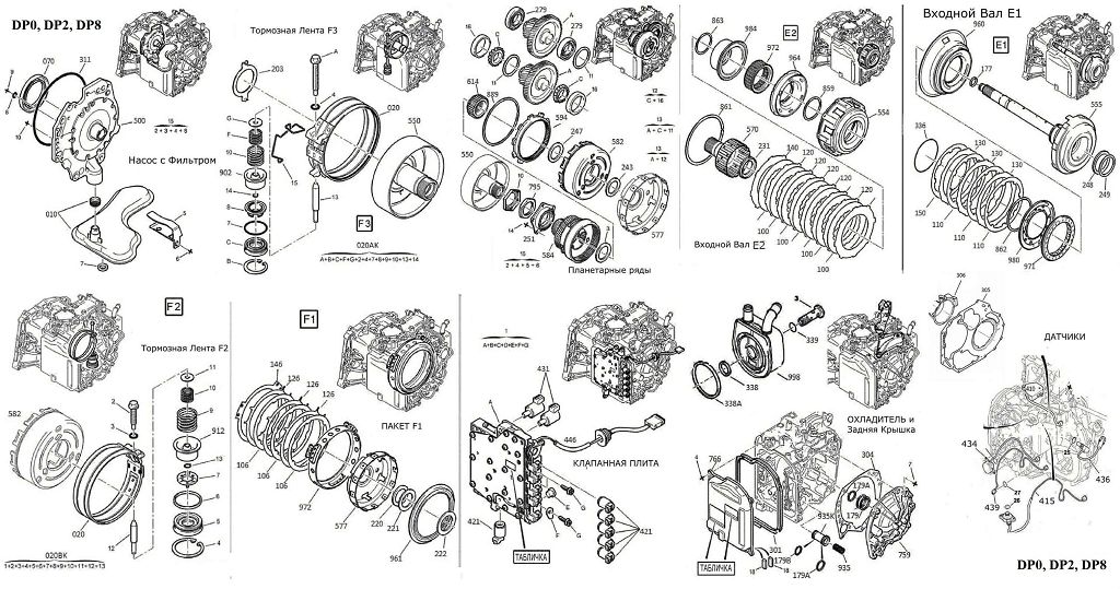 К типовым неисправностям АКПП модификация DP2 относятся следующие: