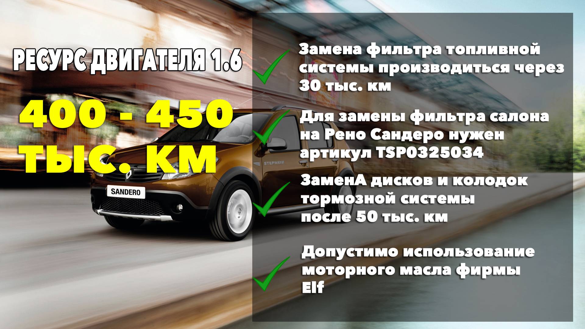 Соблюдая простые правила и рекомендации каждый владелец Renault Sandero Stepway позволит силовому агрегату авто полностью выработать заложенный производителем потенциал и ресурс.
