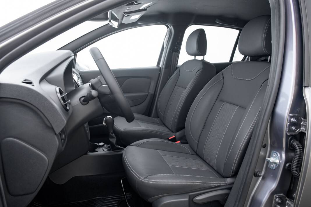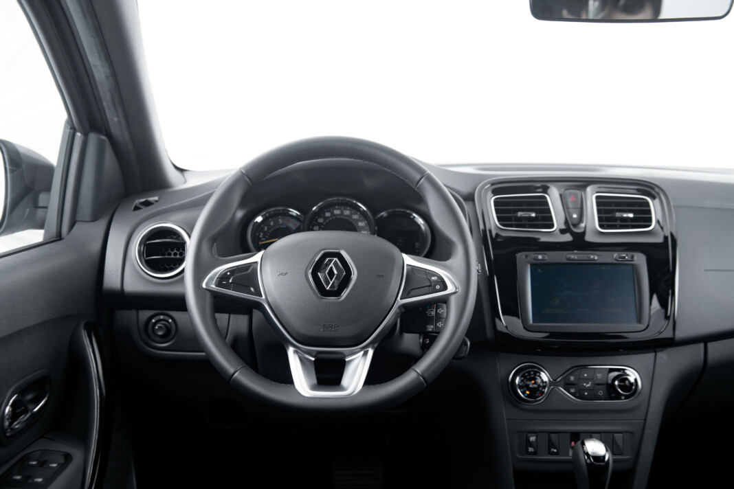 Интерьер турецкой модели отличается от евро-Логана нюансами. Например, здесь другие руль и дефлекторы вентиляции, а передняя панель вместо матового пластика украшена черной глянцевой вставкой. Сохранены аналоговые приборы с монохромным экраном маршрутного компьютера.