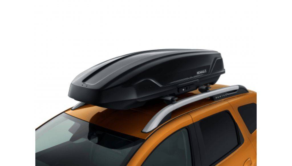 Для этого можно использовать стандартные рейлинги, которые доступны во всех комплектациях нового Дастер, кроме самой дешевой версии Access. Потребуется приобрести не только сам бокс, но и специальные крепления-дуги, код оригинального аксессуара: 8201709063, их стоимость составит более 16 тысяч рублей, но можно подобрать аналоги дешевле. Оригинальный бокс (код: 7711821647) стоит более 50 тысяч, но также полно неплохих аналогов.