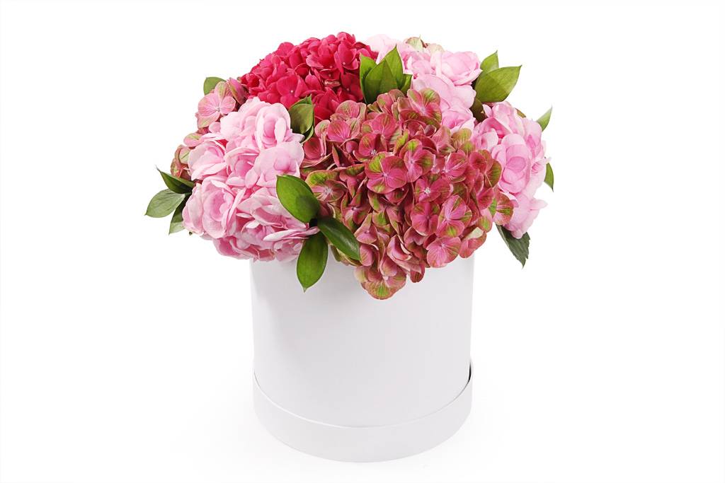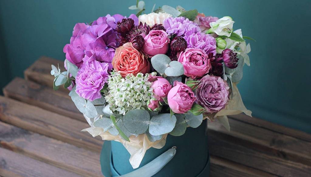 Цветы в шляпной коробке не нуждаются в перемещении в отдельную вазу. Подобранная емкость удачно дополняет флористическую композицию, поэтому эстетический эффект от нее не теряется. Отсюда вытекает следующее преимущество: такой букет достаточно мобилен. При надобности его можно перемещать куда угодно.