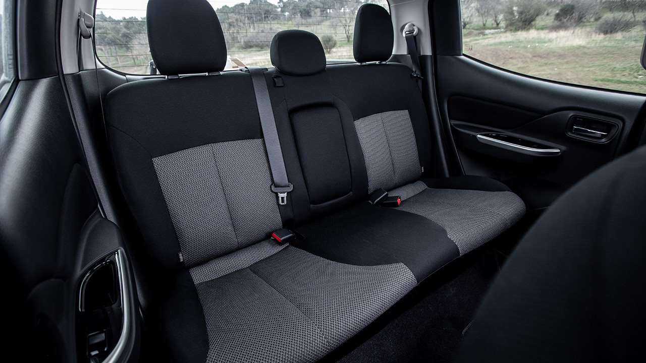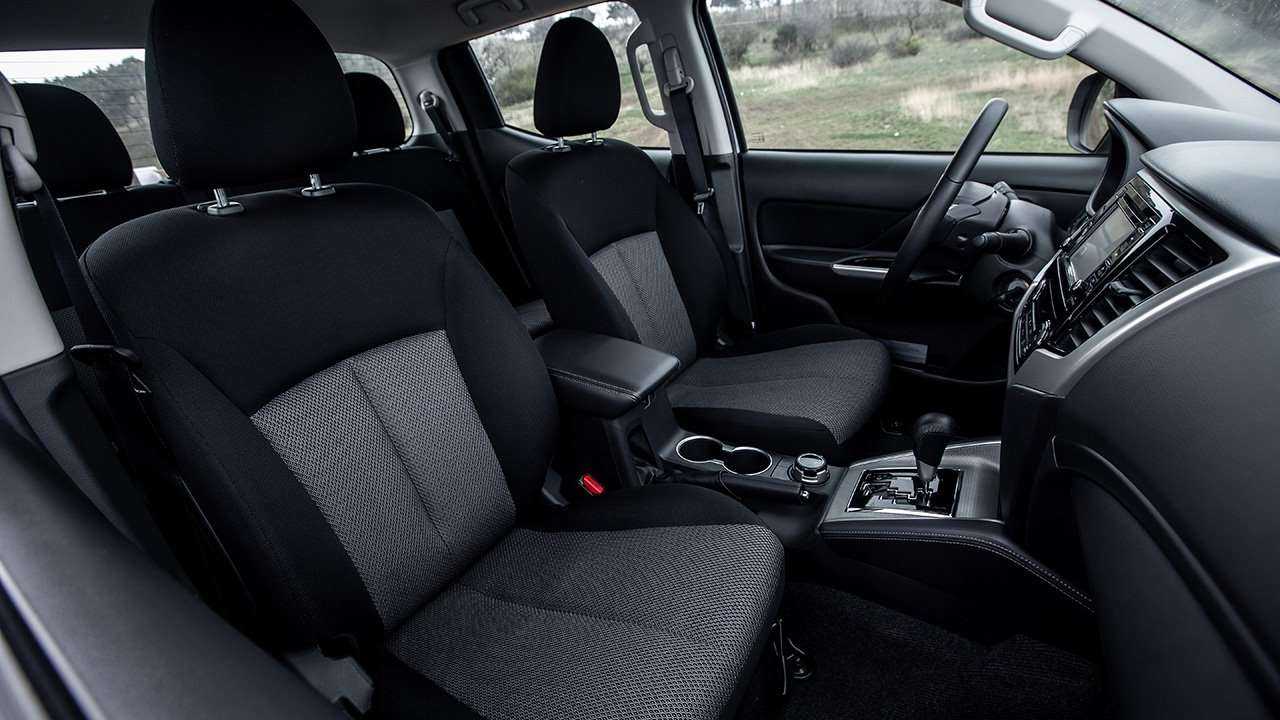 Двойной пикап имеет простые сиденья и приемлемое количество пространства. Сзади полноценный ряд с тремя подголовниками и собственной парой USB-портов (новшество). Спереди Митсубиси Л200 простые плоские кресла с легкой боковой поддержкой и подогревом. Больше никаких функций креслам не достается.