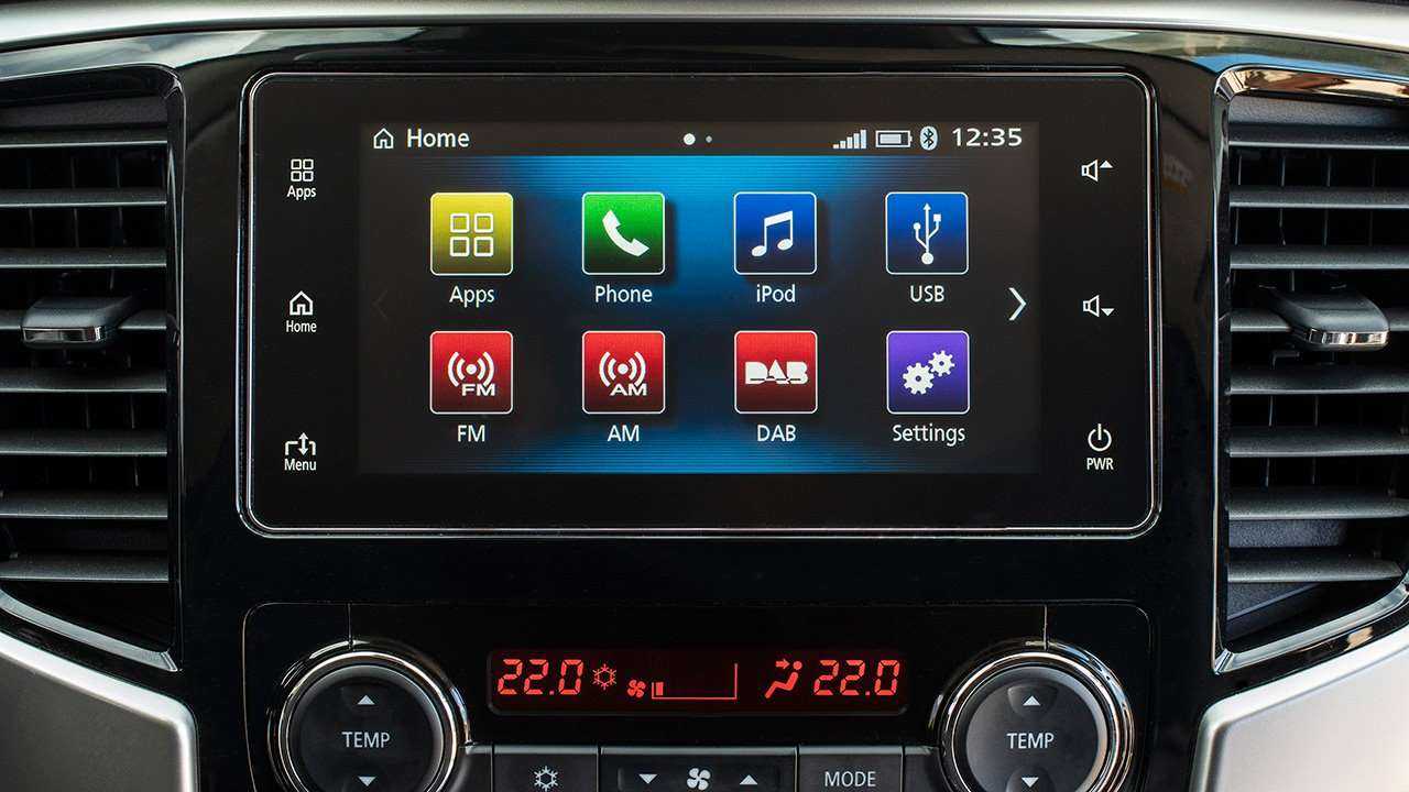 На центральной консоли оставили сенсорную мультимедию, которой добавили поддержку Apple CarPlay и Android Auto. Этот функционал убрали с российского пикапа. Ниже располагается тот же блок 2-зонного климата с кнопками и простым монитором. Внизу расположены кнопки управления блокировкой, а далее начинается тоннель с рычагом КПП и шайбой полного привода.